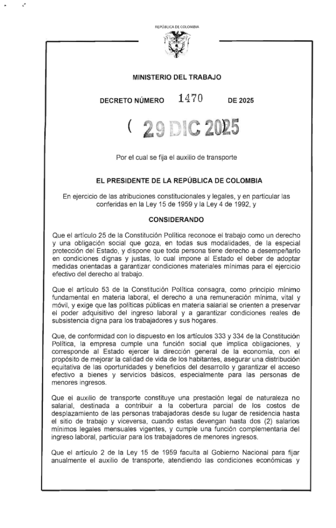 DECRETO NÚMERO 1470 DE 29 DICIEMBRE DE 2025 EN PDF
