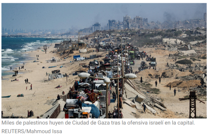 17/09/2025. La ofensiva terrestre de Israel contra Ciudad de Gaza ha asesinado a un centenar de palestinos este martes, según un balance provisional publicado por periodistas y basado en las morgues de hospitales, y ha provocado el éxodo de miles hacia el sur de la Franja.