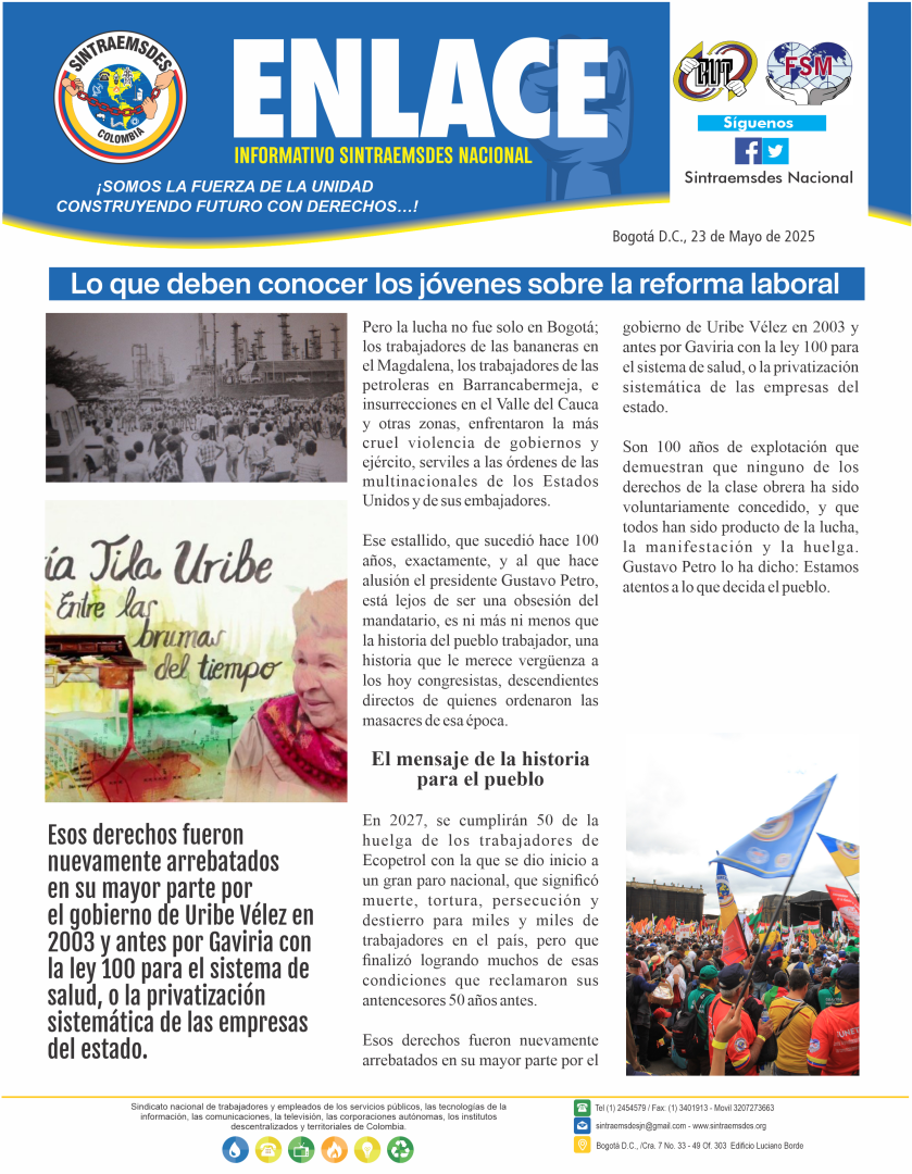 Son 100 años de explotación que demuestran que ninguno de los derechos de la clase obrera ha sido voluntariamente concedido, y que todos han sido producto de la lucha, la manifestación y la huelga. Gustavo Petro lo ha dicho: Estamos atentos a lo que decida el pueblo.