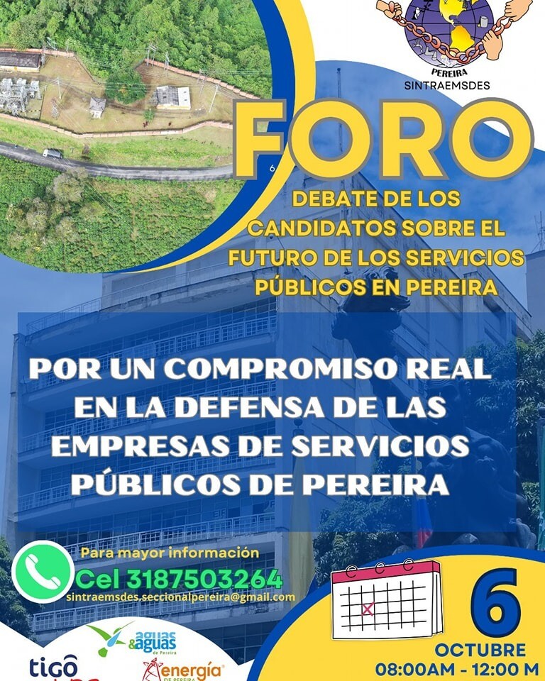 Este encuentro, que se realizará el viernes 6 de octubre, le planteará a los candidatos asistentes las propuestas que la organización sindical y la población vienen planteando, para que los servicios públicos lleguen a todos los ciudadanos con calidad y tarifas justas.
