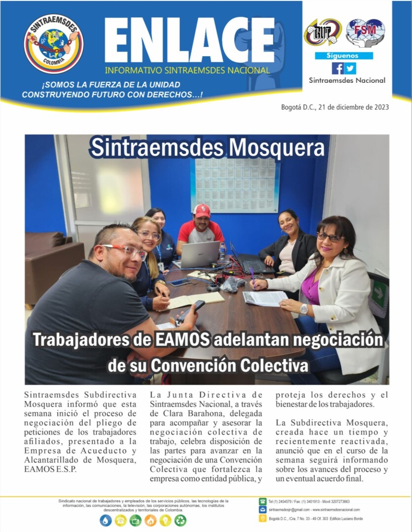 Sintraemsdes Subdirectiva Mosquera informó que esta semana inició el proceso de negociación del pliego de peticiones de los trabajadores afiliados, presentado a la Empresa de Acueducto y Alcantarillado de Mosquera, EAMOS E.S.P.