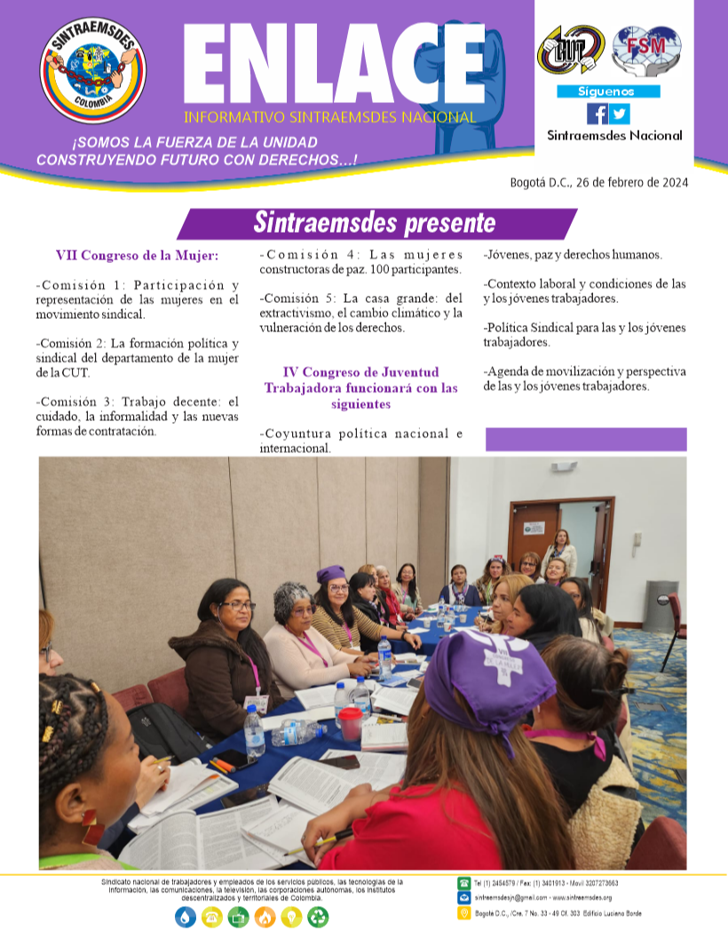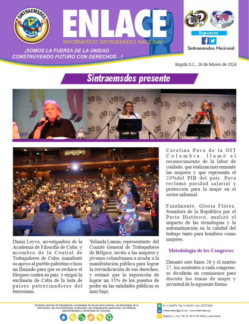 Como delegadas de Sintraemsdes Nacional, participarán en los tres eventos, la Secretaria Nacional de la Mujer, Juventud y Género, Clara Barahona, junto a Margaret Solano y Luz Mary Sanabria.