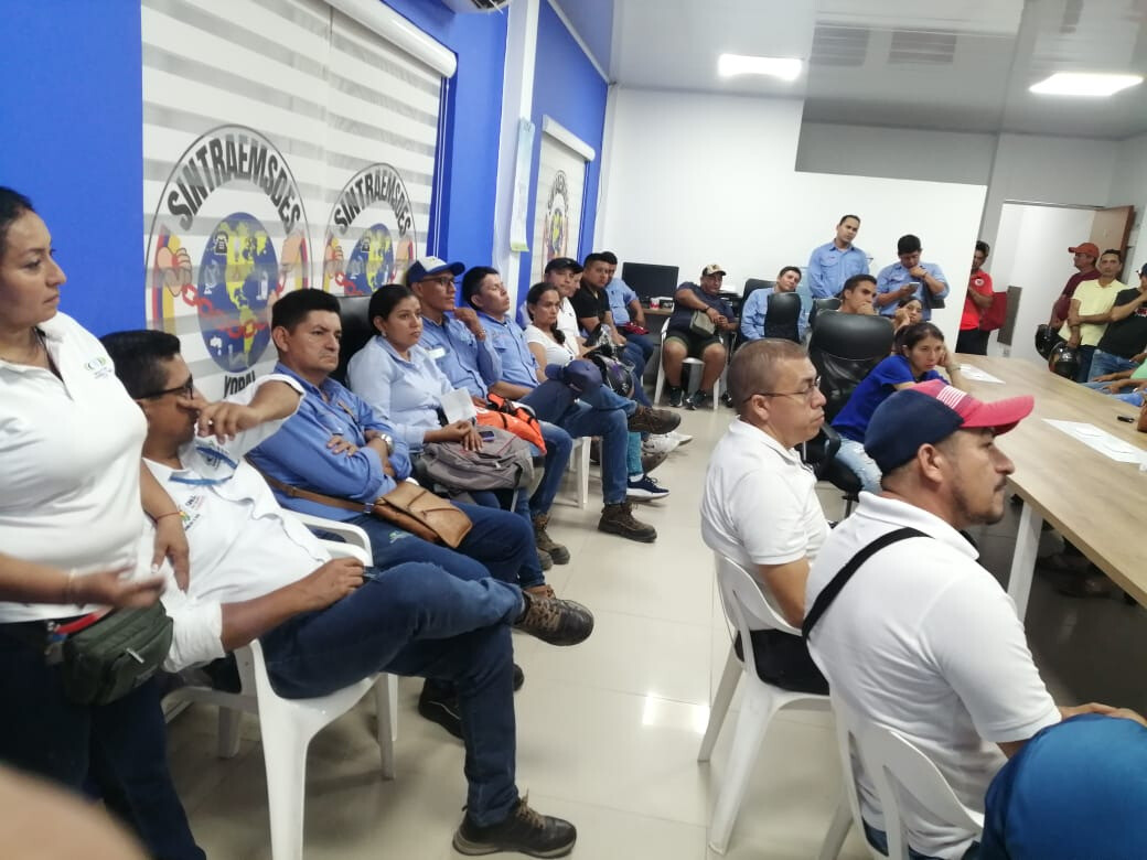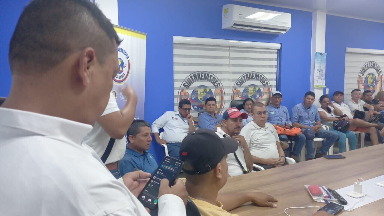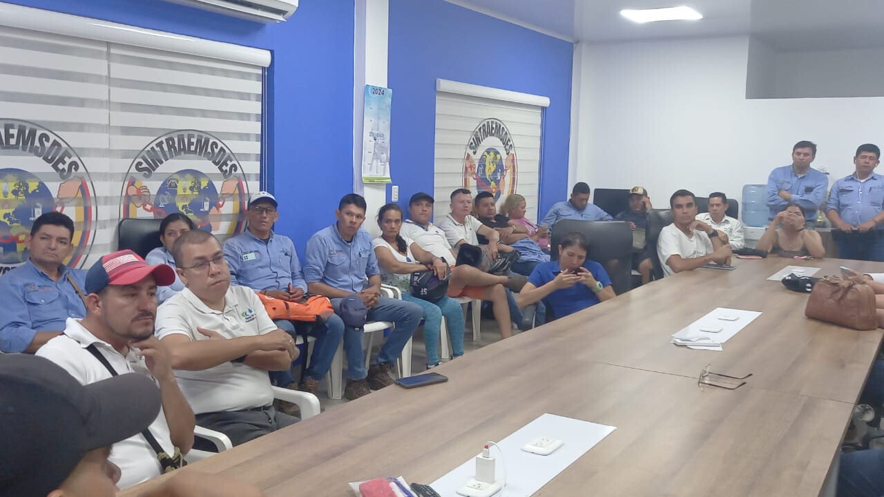 Asamblea de trabajadores Sintraemsdes Subdirectiva Yopal evaluando el informe de socialización de la Superservicios el día de ayer 30 de enero de 2024.