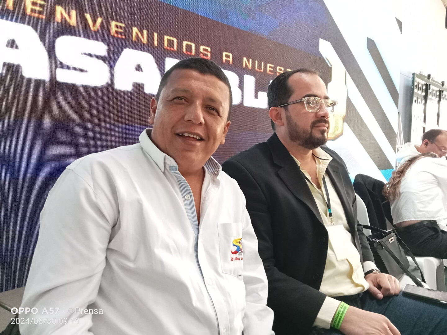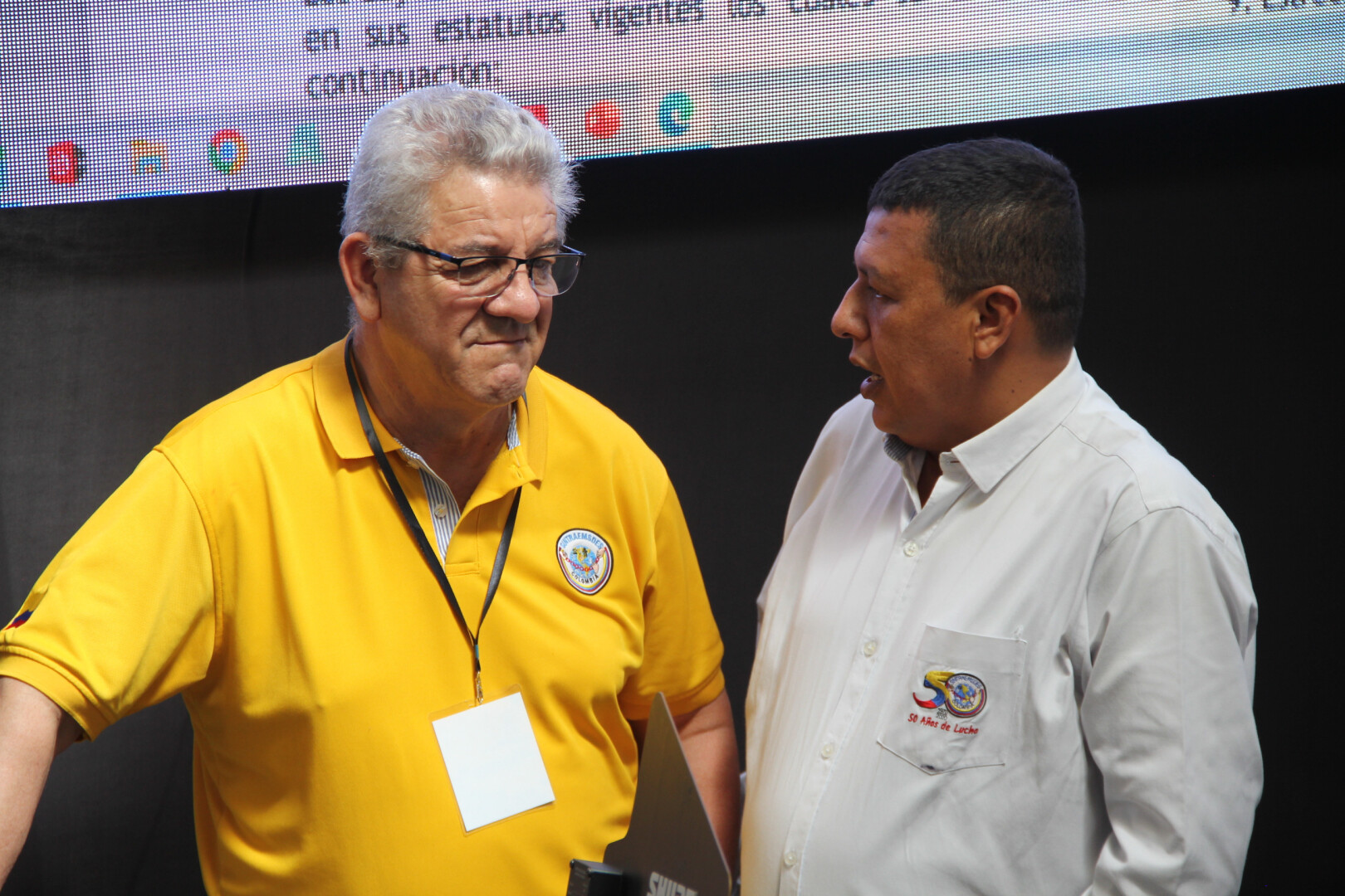 Oscar Estupiñán, presidente nacional de Sintraemsdes (e), junto a Emiliano Jurado, Secretario Nacional de Aguas, Sanemiento Básico y Ambiente, transmitieron el saludo de la Junta Directiva Nacional y felicitaron a la subdirectiva por la celebración de sus 87 años de labores, así como la remodelación de la Sede Cundinamarca, para el beneficio y comodidad de los afiliados.