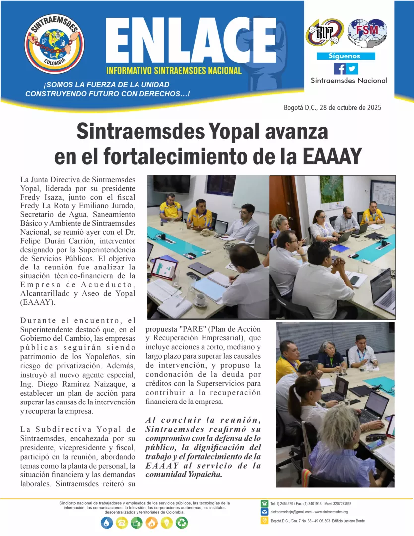 Al concluir la reunión, Sintraemsdes reafirmó su compromiso con la defensa de lo público, la dignificación del trabajo y el fortalecimiento de la EAAAY al servicio de la comunidad Yopaleña.