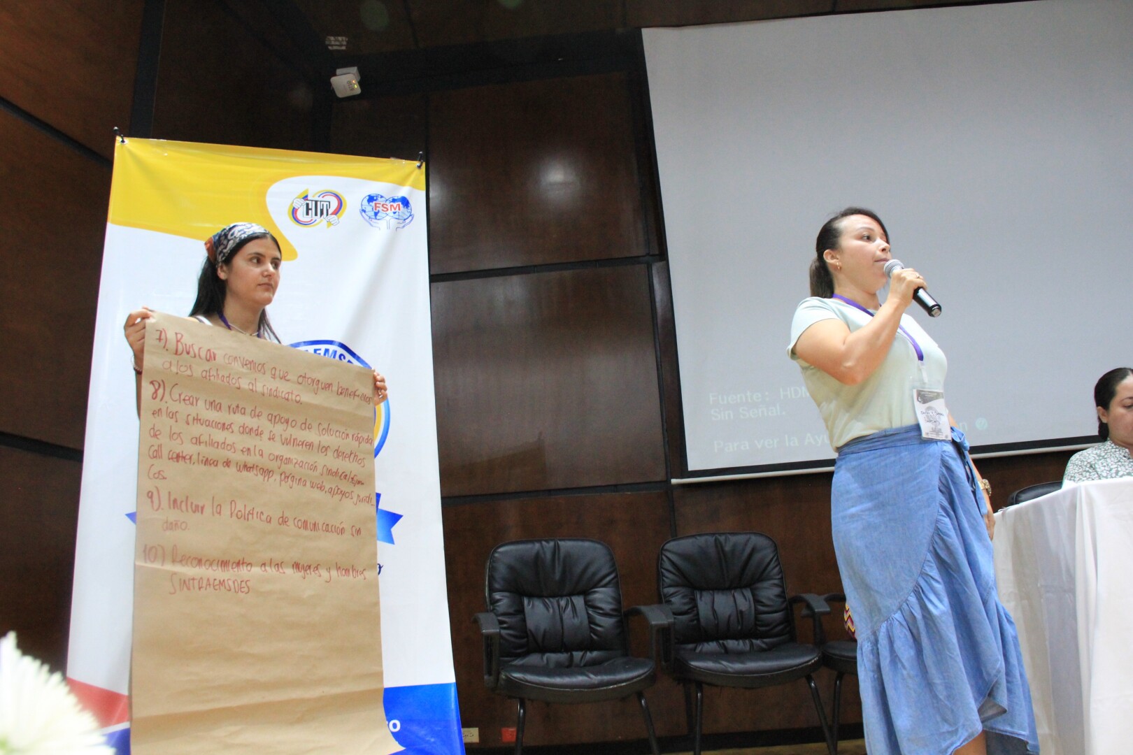 La Junta Nacional, en desarrollo de sus funciones y en cumplimiento del Articulo 60 del Estatuto Vigente, viene disponiendo los recursos y apoyo para que las más de dos mil ochocientas (2.800) mujeres afiliadas a Sintraemsdes tengan todas las garantías para desarrollar sus políticas y liderazgos materializando el Congreso de la Mujer como un espacio institucional y estatutario donde se proyectan como alternativa de dirección para conducir las lucha que históricamente ha liderado SINTRAEMSDES.